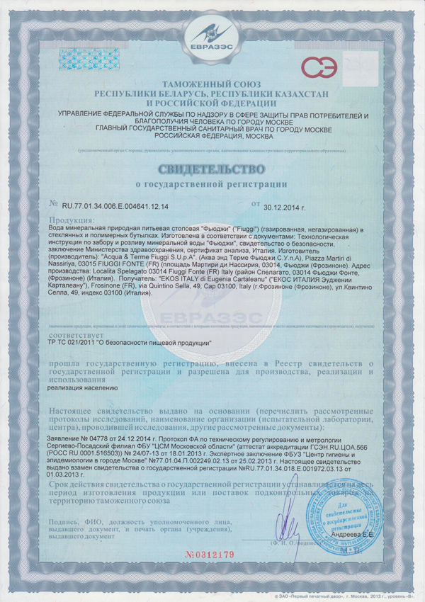 Минеральная лечебно - столовая вода Фьюджи (Fiuggi)